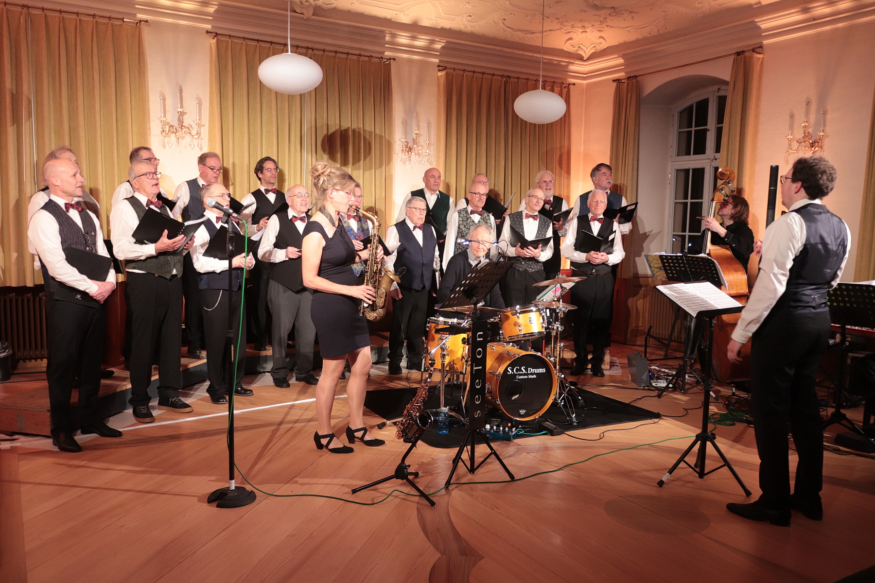 Gespannt war man auf die Lieder der «Prinzen». Von der Jazz Band begleitet und ergänzt, stürzten sich die Sänger geradezu auf diese für sie doch neue und herausfordernde Musiksparte und meisterten die bekannten Stücke «Millionär», «Mein Fahrrad» und «Mann im Mond» inklusive Tenor-Solo bravourös. Mit unsterblichen und freudig vorgetragenen Melodien aus den Zwanziger Jahren verabschiedete sich der Chor schliesslich von seinem begeisterten Publikum.